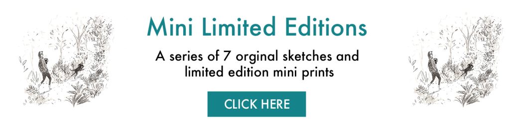 A towering tree teems with life—monkeys doze, birds flutter, and a parrot takes flight. A couple run toward it, with their little dog in chase. Inspired by Costa Rica, this painting is alive with movement and wonder.